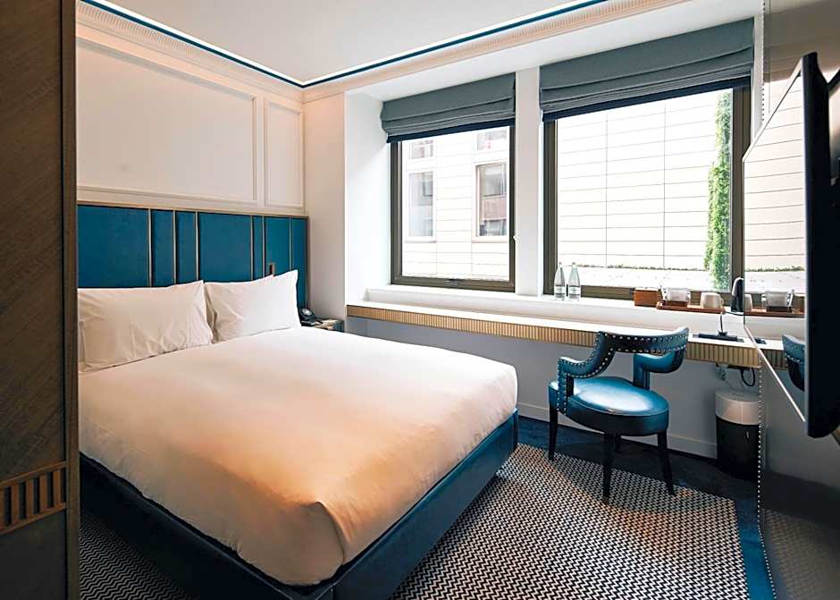 These are fully air-conditioned and equipped with air purifier. Rooms offer complimentary still/sparking water, Wi-Fi, 50-inch flat-screen TV, high-thread-count bedding , working ledge and branded bathroom amenities. In addition, a complimentary specialty coffee/tea drip bag by the hotel’s coffee house is provided. The Double Room, a cozy 180 square feet space featuring 1 King size bed (59 in x 79 in) can accommodate up to 2 adults, ample closet space, white marble bathroom with a standing shower and sink. Its minimalistic design with accents of bronze and marble detailing throughout the room is also a testament to Page Hotel’s understated and thoughtful approach to hospitality. Inside, you can indulge in an array of our favorite things - a Marshall Speaker with an in-room music playlist exclusively curated by us, Page Common coffee drip bag and tea bag, Appelles bathroom amenities and Blueair air purifier - much needed essentials after a long day of exploration.
